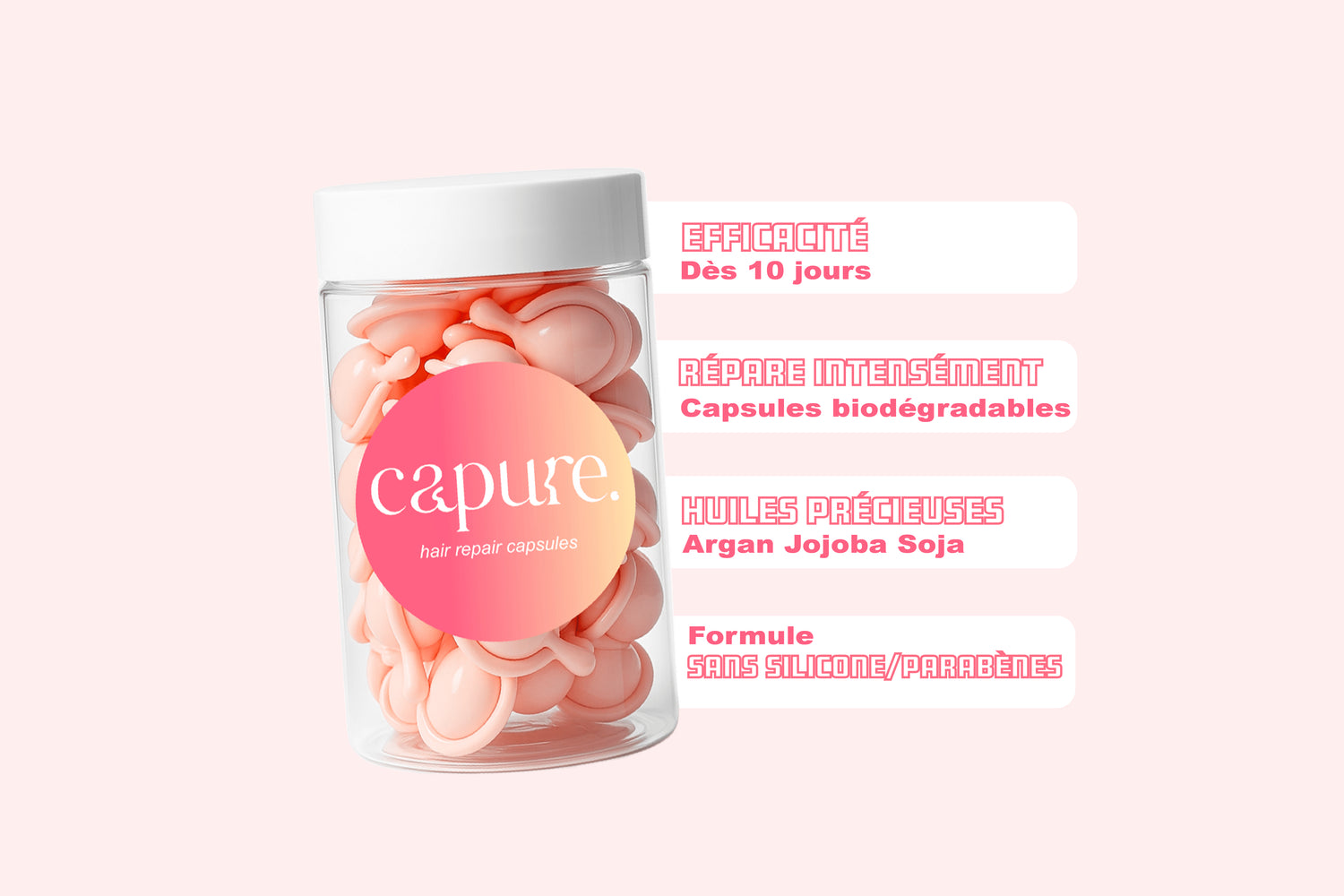 Savourez la juste dose : une capsule suffit pour sublimer vos cheveux.
